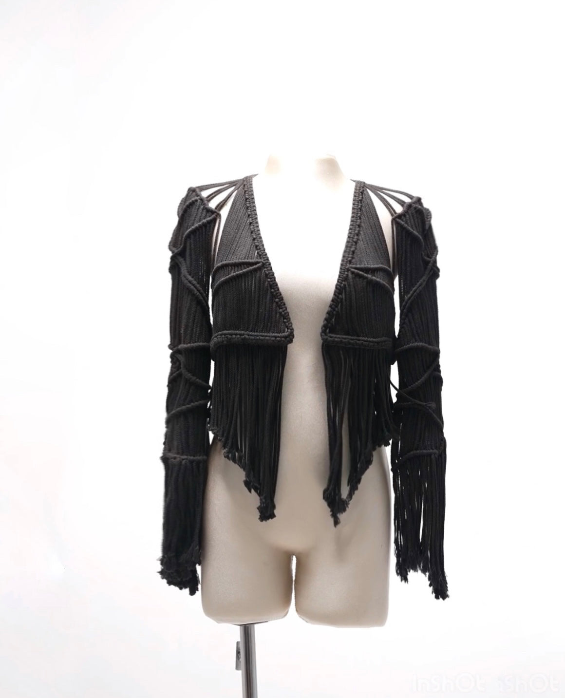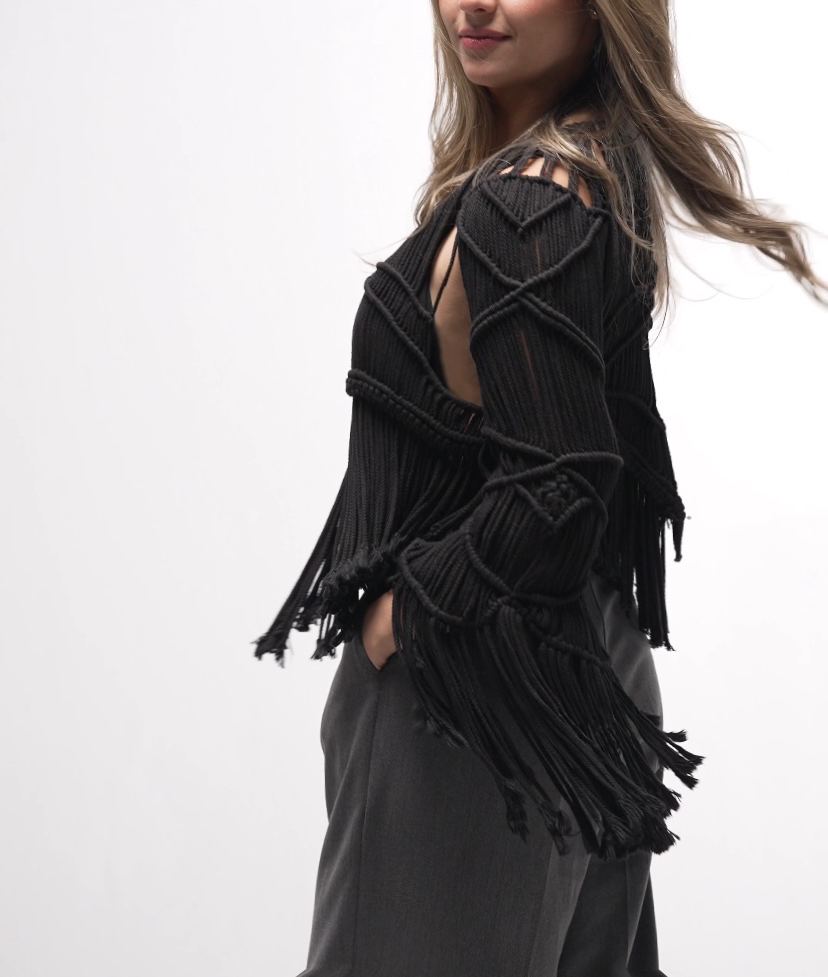 Nuestro Bestseller, Chaqueta tejida usando la tecnica de macrame, hecha completamente a mano en cordon de algodón, tejido ligero y respirable, perfecto para añadir un toque boho a tu look.
